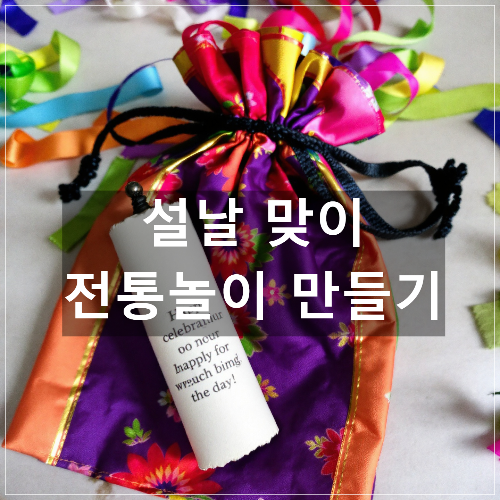 - 준비물: 색 한지 또는 천, 실과 바늘, 장식 끈
