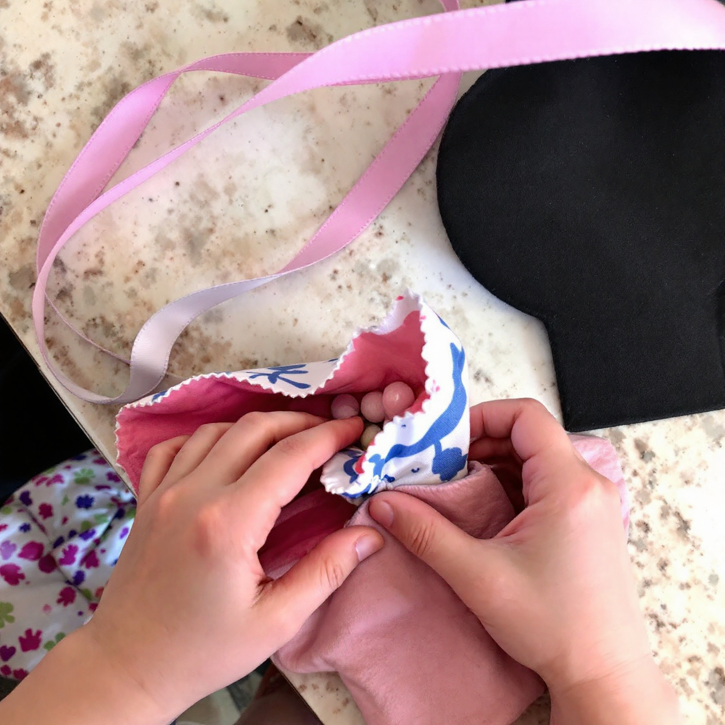 - 한지나 천을 주머니 형태로 접거나 바느질합니다.